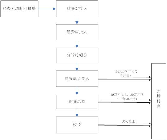 对公业务由经费审批人、分管校领导签批后,方可办理财务付款审批流程。如使用科研经费办理对公业务的,完成科研经费审批流程后办理财务付款审批流程。
