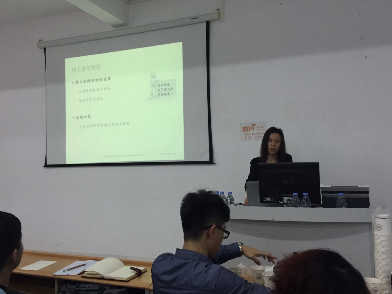 在培训会上,几位软件工程师向大家详细阐释了财务信息系统主要模块的操作流程,友财工程师吴强从项目经费查询模块、网上报销制单模块,向大家详细介绍了网上财务报销系统的整个操作过程;国信朱坤淼、洪英分别从网报影像单据扫描以及PM合同会签、审批等操作作详细说明。针对大家关于系统操作提出的疑问,工程师们也在会上一一详细解答。