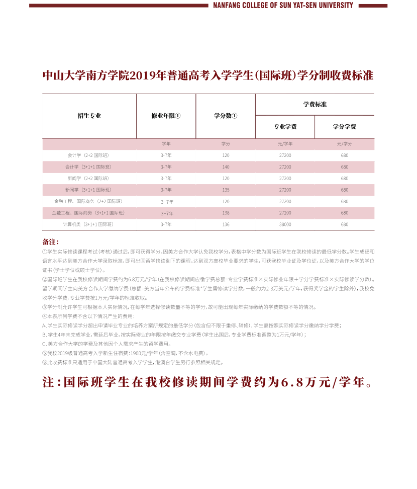 附件2 : 中山大学南方学院2019年普通高考入学学生(国际班)学分制收费标准.pdf