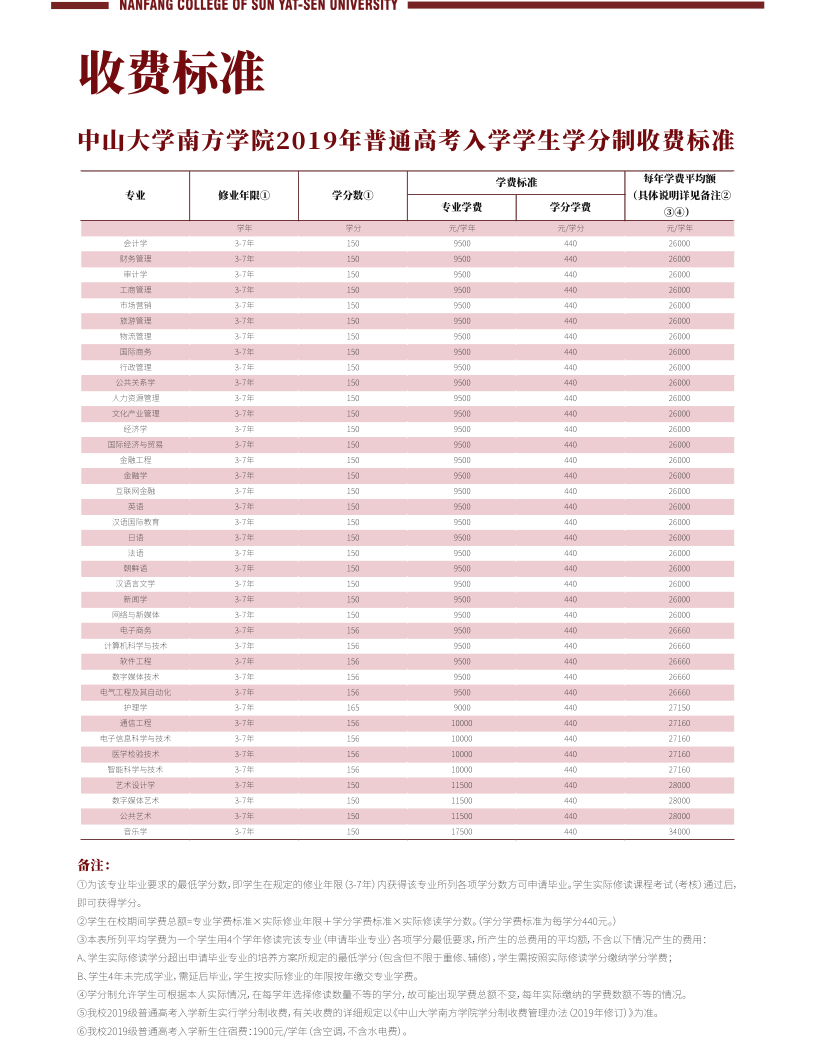 附件1 : 中山大学南方学院2019年普通高考入学学生学分制收费标准.pdf